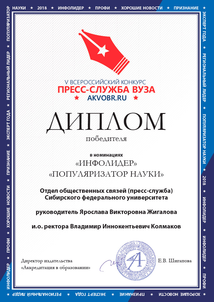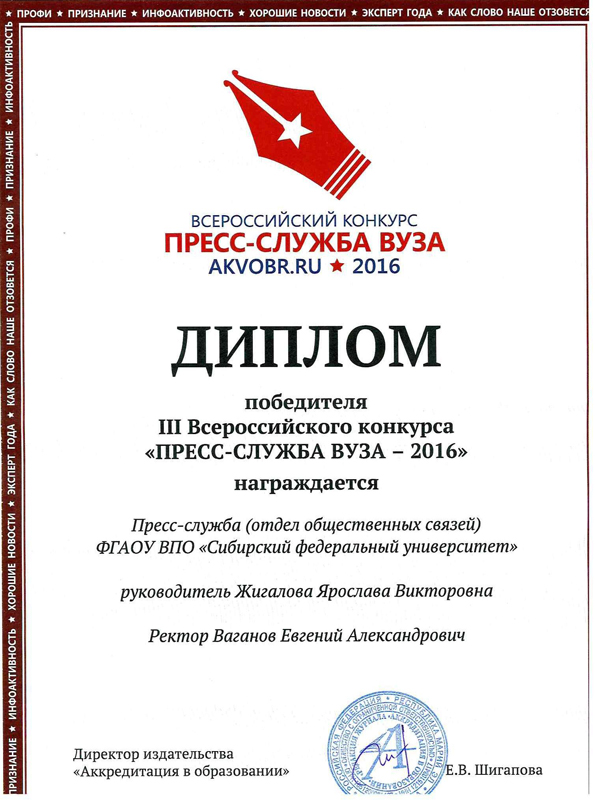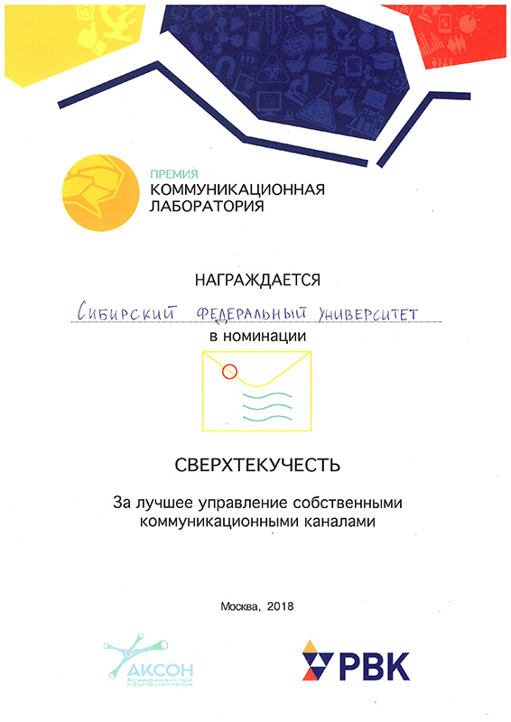 В 2010 году газета вошла в число финалистов конкурса Министерства образования и науки для СМИ «PRO-образование» — в номинации «Лучшая газета, освещающая тему образования». Лучшими в разных номинациях были признаны всего 35 изданий (из 340 заявленных на конкурс), среди них вузовская газета была одна — из СФУ.