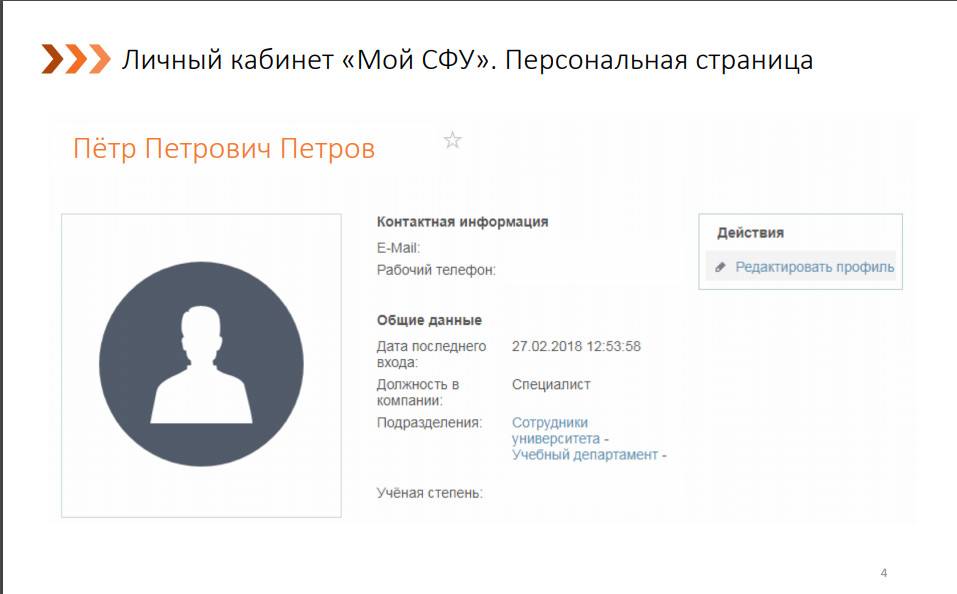 Если вы учитесь или работаете в СФУ, то у вас уже есть аккаунт в «Мой СФУ». Часть данных автоматически заполнена: фамилия, имя, отчество, учебная группа и институт, должность и структурное подразделение, учёное звание и степень.