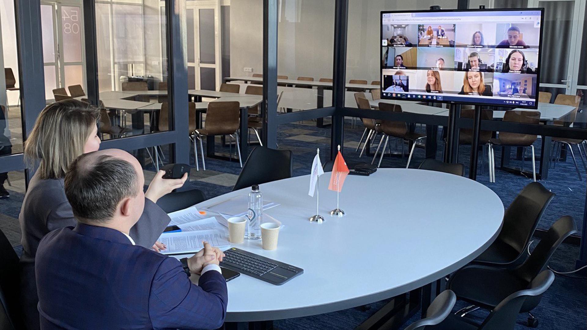 На встрече студенты Сибирского федерального и Уральского федерального университетов смогли задать вопросы Александру Попову, директору по финансам, и Марине Деревлевой, директору департамента по развитию персонала и корпоративной культуре, а также кураторам проекта от университетов.