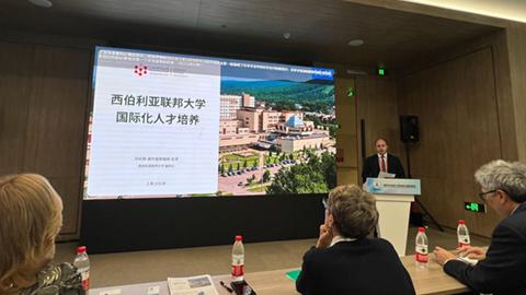 Проректор по перспективным проектам СФУ Сергей Верховец презентовал для китайской аудитории формат НОЦ мирового уровня, реализуемый в Российской Федерации, в частности на базе Сибирского федерального университета.