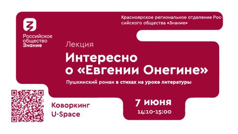Приглашаем на лекцию от Красноярского регионального отделения Российского общества «Знание» о романе «Евгений Онегин».