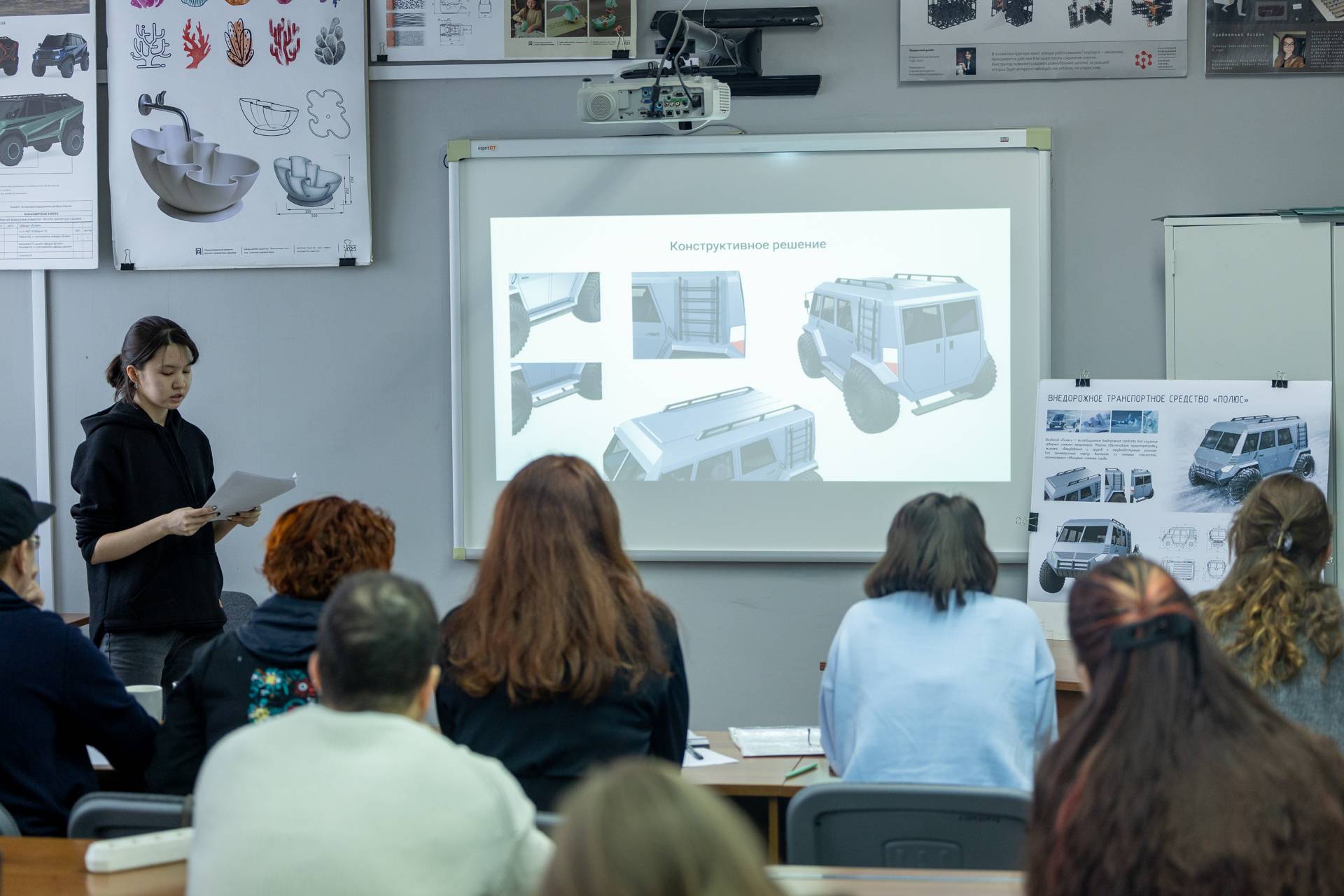 «В этот раз студенты должны были подготовить версию экстерьера дизайна проходимого автомобиля, который могли бы использовать любители путешествий, участники арктических экспедиций, сотрудники МЧС. Учащиеся начинали подготовку к проекту с исследования аналогов, например автомобилей Visuva, “Север-трак”, с консультаций со специалистами. Следую современным тенденция учащиеся обязательно анализируют, какие модели предлагает искусственный интеллект, а потом уже создают свою версию дизайна объекта», — отметила Полина Звонарева, руководитель проектов, доцент кафедры дизайна, начальник учебно-организационного отдела ИАиД СФУ.