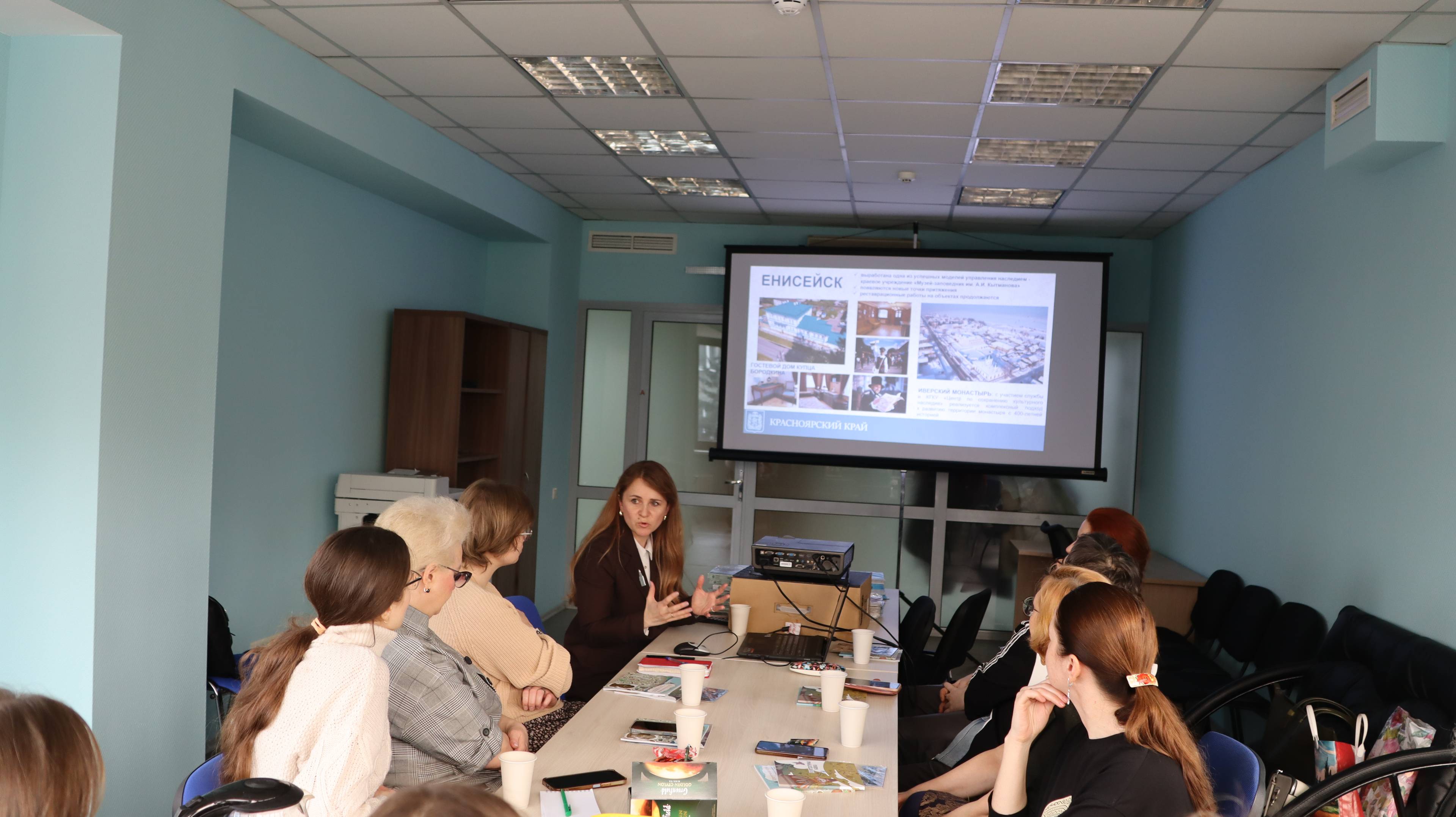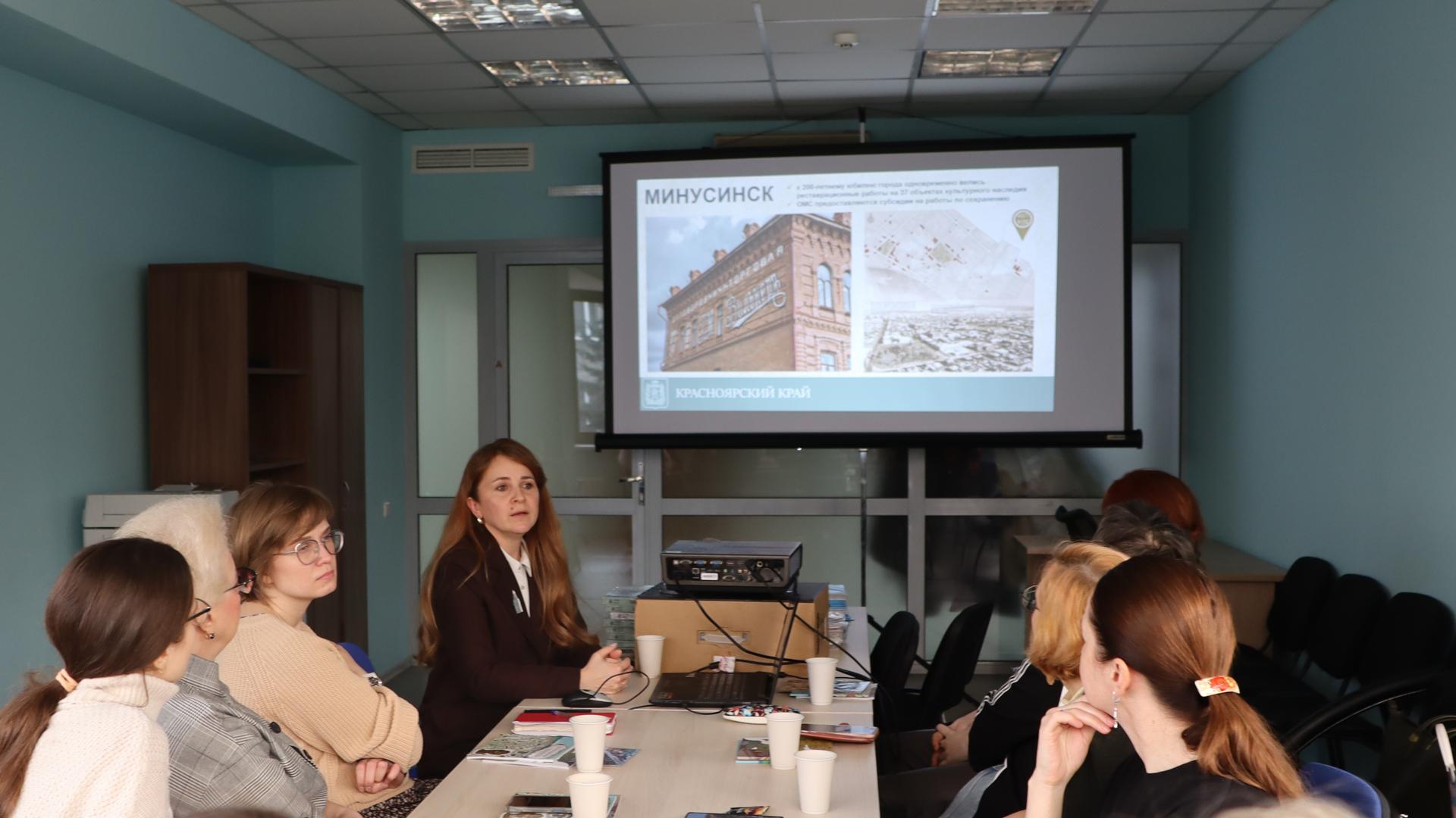 Елена Бахарева, заместитель руководителя службы по государственной охране объектов культурного наследия Красноярского края, провела для педагогов дополнительного образования лекцию-беседу «Миссия — сохранять культурное наследие. Город как учебник: учим детей видеть прекрасное».