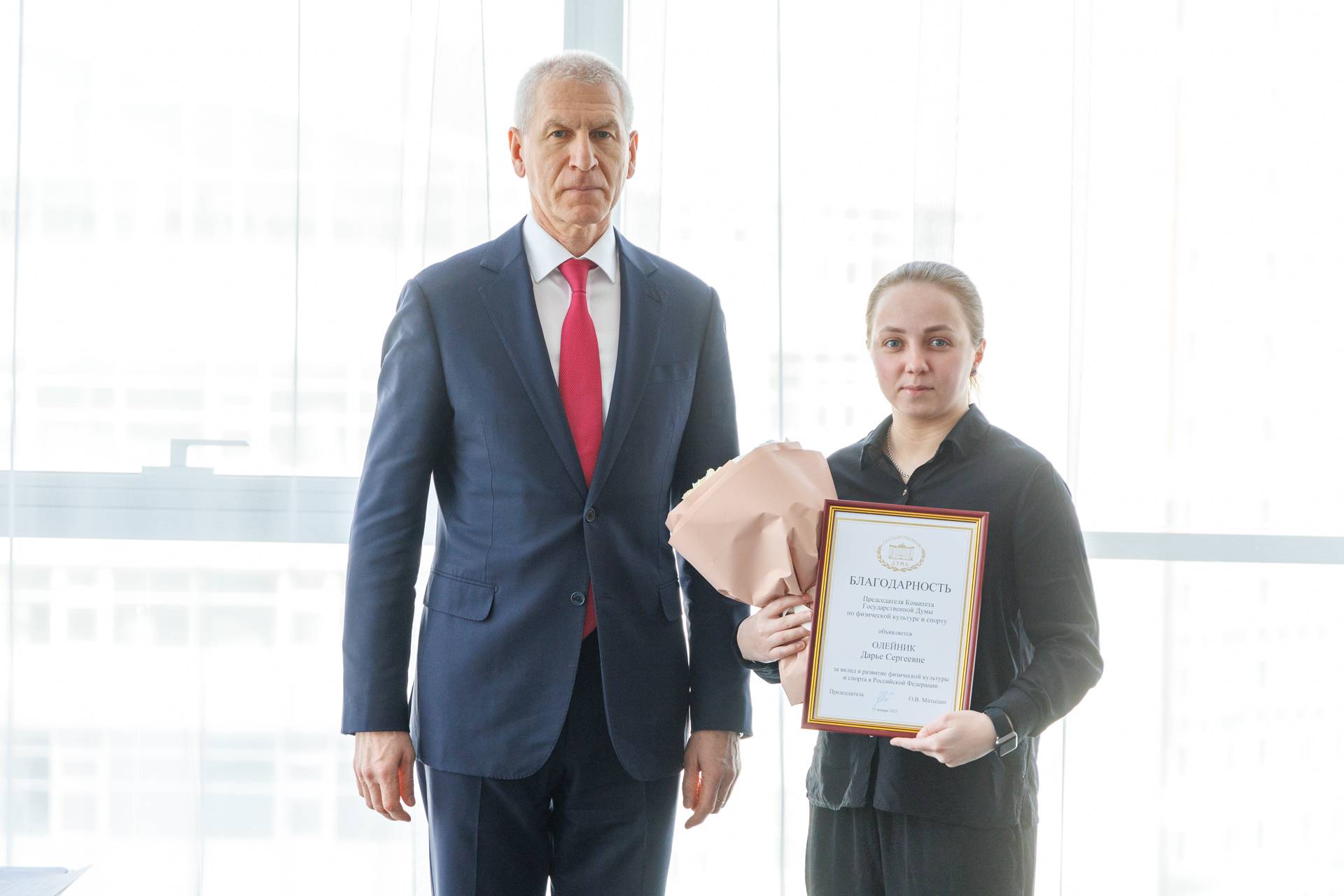 Добавим, в этот день студенты Института физической культуры, спорта и туризма Роман Никулин и Владлена Ярлыкова получили благодарности из рук председателя комитета по спорту Государственной Думы Олега Матыцина. Никита является членом сборной команды Красноярского края по кёрлингу на колясках, призёром регионального этапа чемпионата профессионального мастерства для лиц с ограниченными возможностями здоровья «Абилимикс». Владлена — член сборной команды Красноярского края по настольному теннису и лидер сборной команды СФУ, дважды лауреат регионального этапа конкурса-премии «Студент года» в номинации «Спортсмен года», спортивный волонтёр.