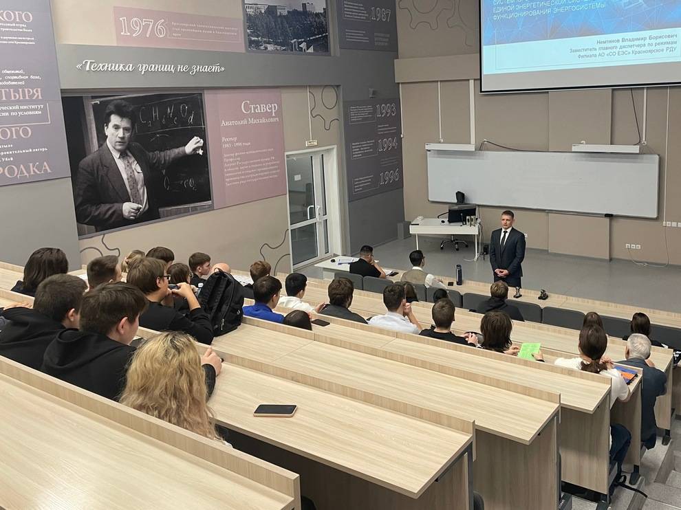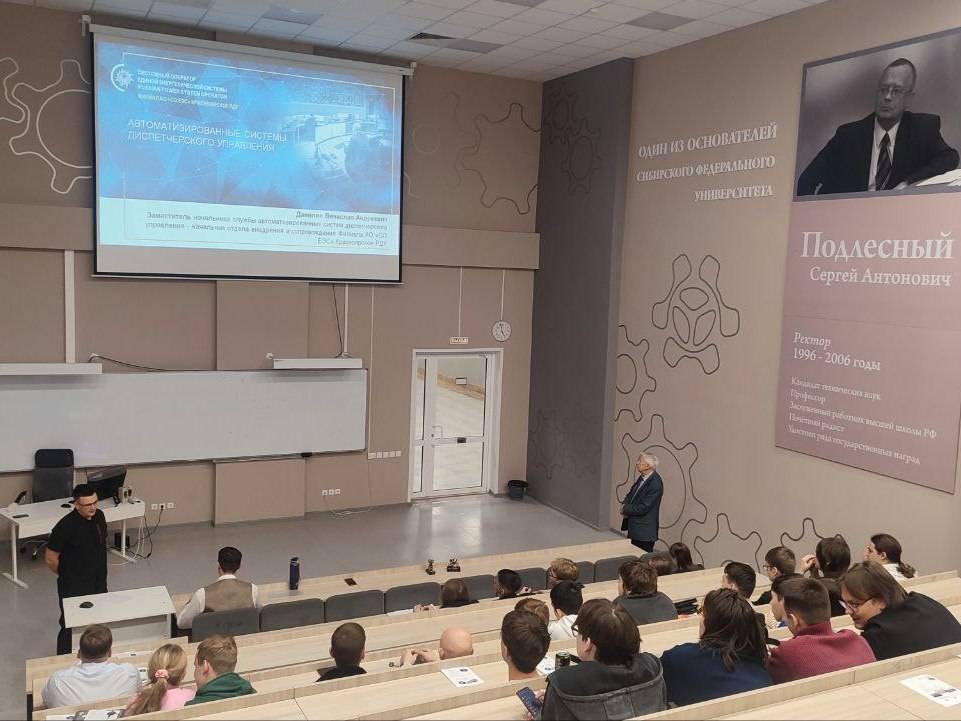 Профориентационная лекция для студентов-энергетиков прошла в соответствии с планом совместных мероприятий Системного оператора с СФУ, который ежегодно разрабатывается и подписывается в рамках действующего соглашения. Помимо проведения лекций, дней компании, экскурсий, мастер-классов, тренингов, деловых игр, лекций, план предусматривает проведение практик и стажировок преподавателей и студентов на базе Красноярского РДУ, участие представителей АО «СО ЕЭС» в работе государственных экзаменационных и аттестационных комиссий, руководство подготовкой и рецензирование ими выпускных квалификационных работ, участие студентов и преподавателей вуза в семинарах, научных и научно-практических конференциях, проведение экскурсий на объекты диспетчерского управления, что способствует подготовке высококвалифицированных кадров для электроэнергетического комплекса России.