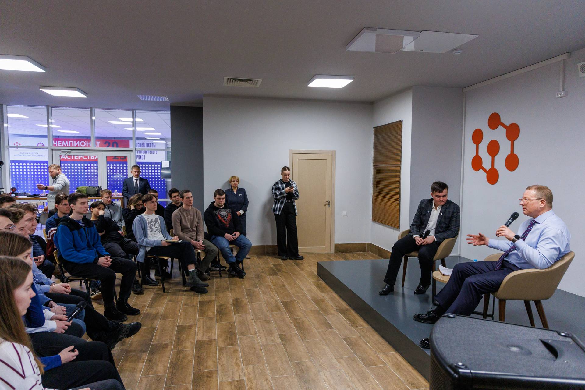 Больше всего студентов интересовал вопрос трудоустройства в компании, уточняли, какие есть возможности для развития в отрасли, проводятся ли психологические тесты для работников при приёме на работу и как проходит собеседование.