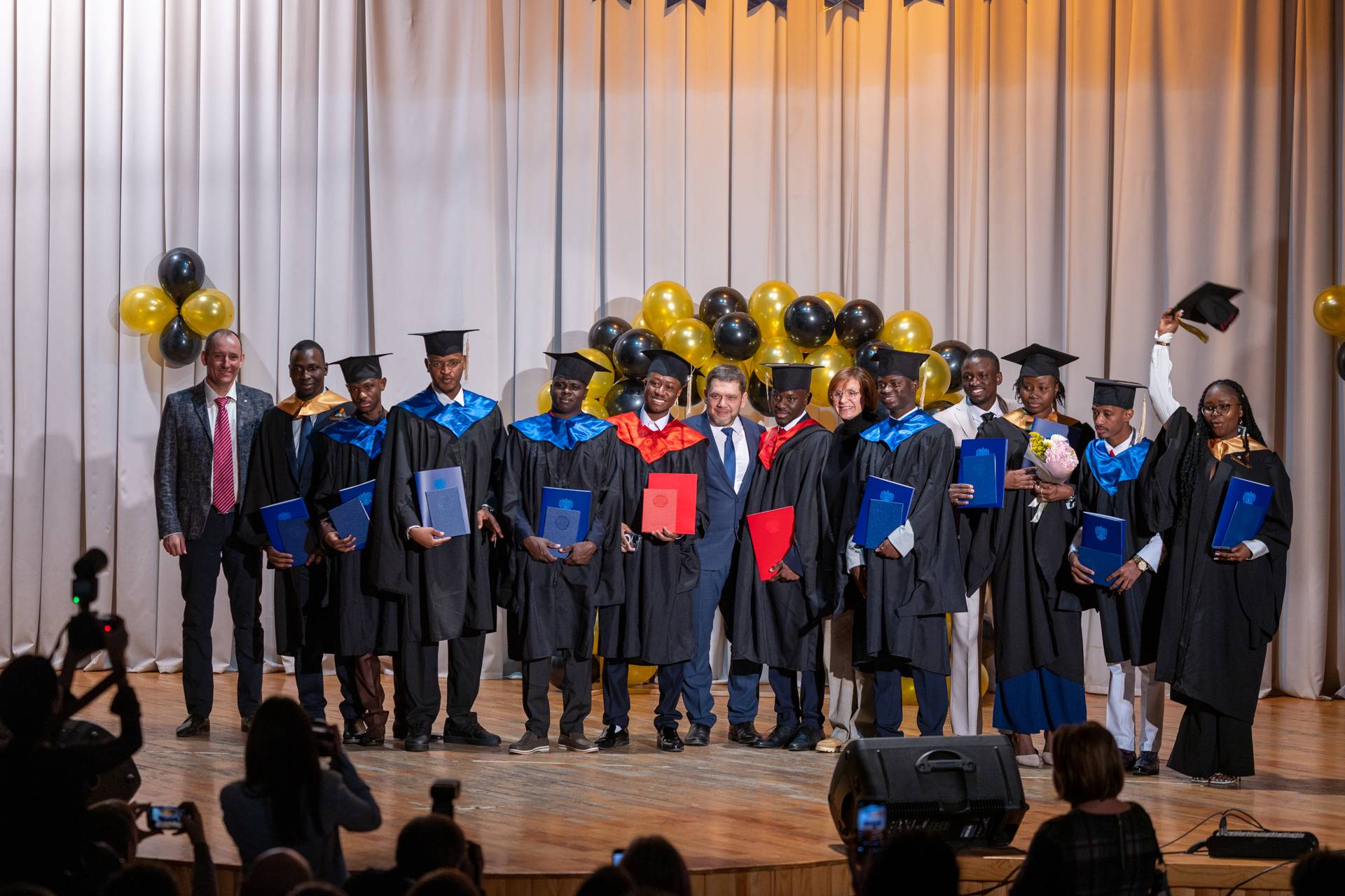 Отдельно на выпускном в ИЦМ чествовали выпуск студентов из Гвинеи, которые учились в СФУ по специальной программе РУСАЛа. Среди выпускников даже 2 красных дипломника.