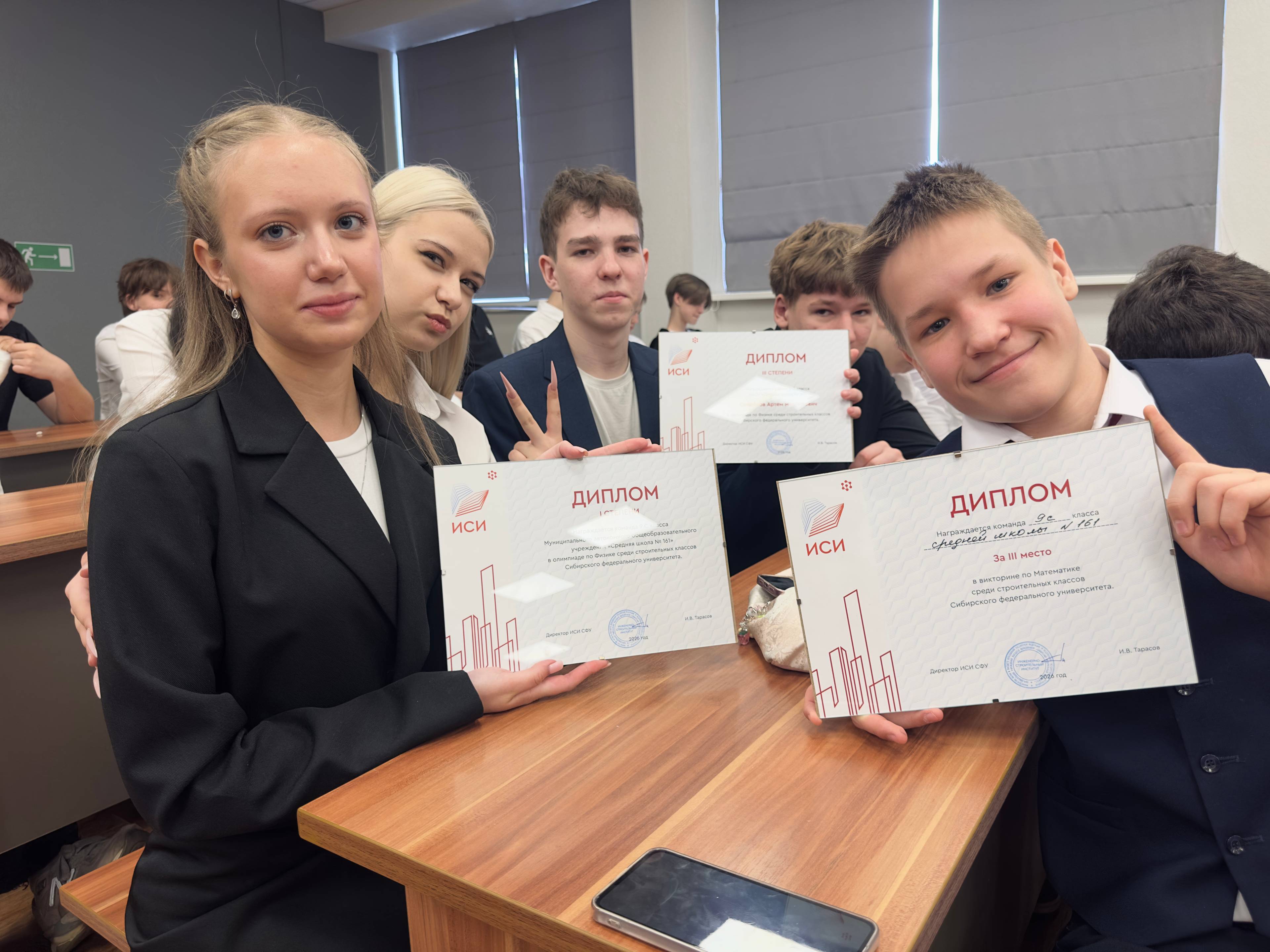 Абсолютными победителями по результатам всех испытаний стали школьники гимназии № 9, получив Кубок «Лучший инженерно-строительный класс, 2026». Первое место в олимпиаде по физике заняла школа № 161, в викторине по математике и конкурсе видеороликов — команда гимназии № 9. Специальный приз жюри «За лучшую режиссуру и креативный подход» ушёл школе № 133 за самый запоминающийся видеоролик.