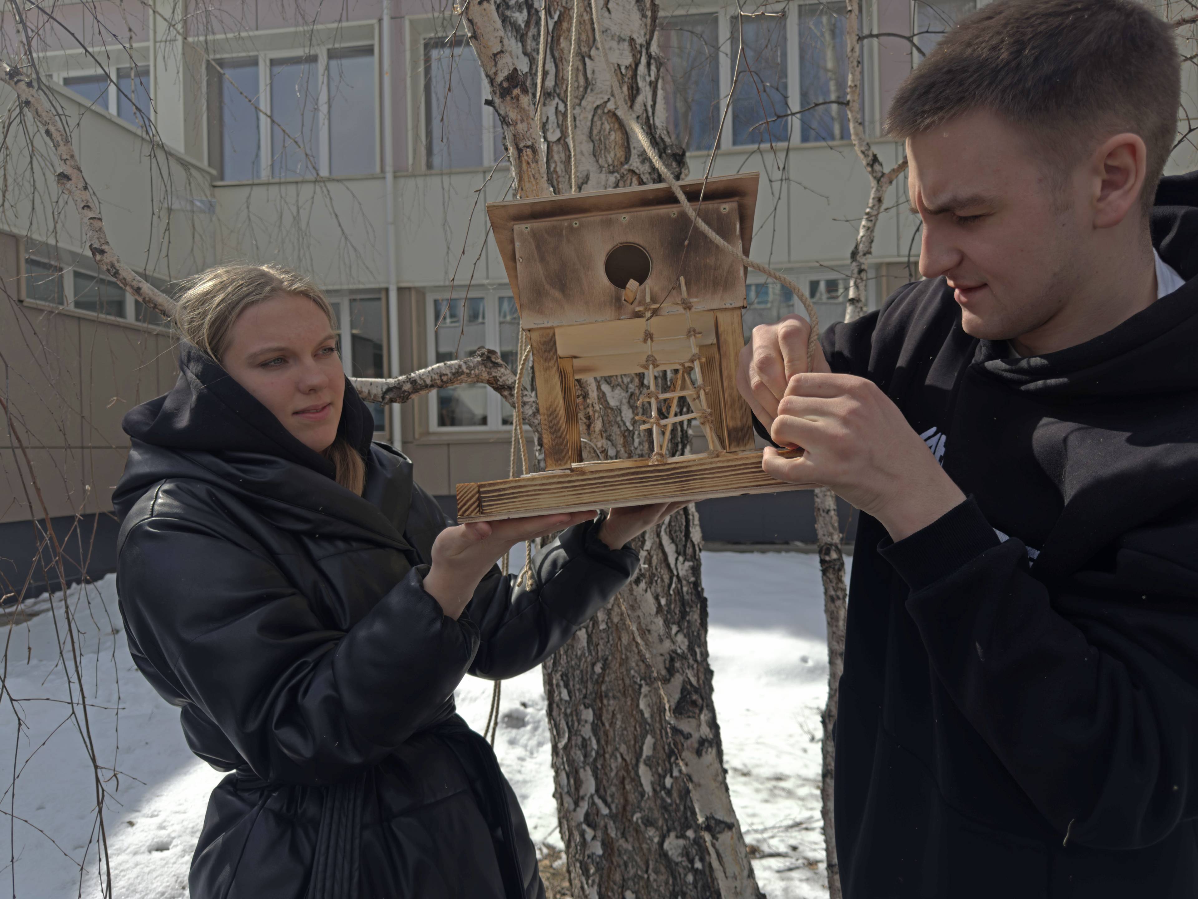 В конце чемпионата школьники, учителя, преподаватели и студенты установили во дворе института экспериментальный домик для белок и птиц. Его спроектировали и соорудили сами школьники с помощью студентов института.