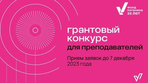 Стартовал Грантовый конкурс для преподавателей магистратуры от Благотворительного фонда Владимира Потанина. Дата окончания подачи заявок — 7 декабря 2023 года.
