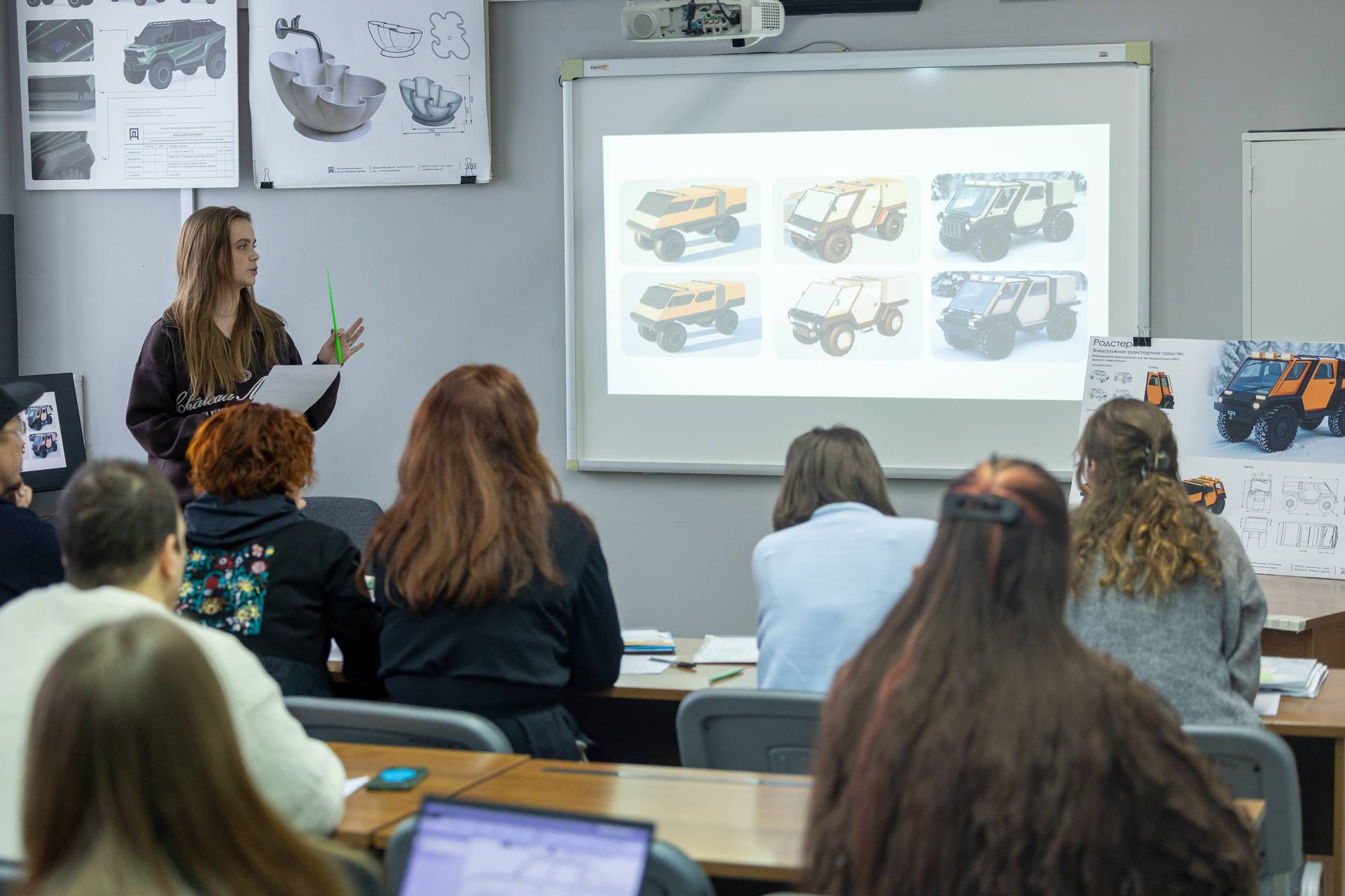 «В этот раз студенты должны были подготовить версию экстерьера дизайна проходимого автомобиля, который могли бы использовать любители путешествий, участники арктических экспедиций, сотрудники МЧС. Учащиеся начинали подготовку к проекту с исследования аналогов, например автомобилей Visuva, “Север-трак”, с консультаций со специалистами. Следую современным тенденция учащиеся обязательно анализируют, какие модели предлагает искусственный интеллект, а потом уже создают свою версию дизайна объекта», — отметила Полина Звонарева, руководитель проектов, доцент кафедры дизайна, начальник учебно-организационного отдела ИАиД СФУ.