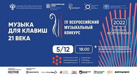 5 декабря 2022 года в 18:00 в Конгресс-холле Сибирского федерального университета в рамках IV Всероссийского музыкального конкурса пройдёт концерт «Музыка для клавиш 21 века».