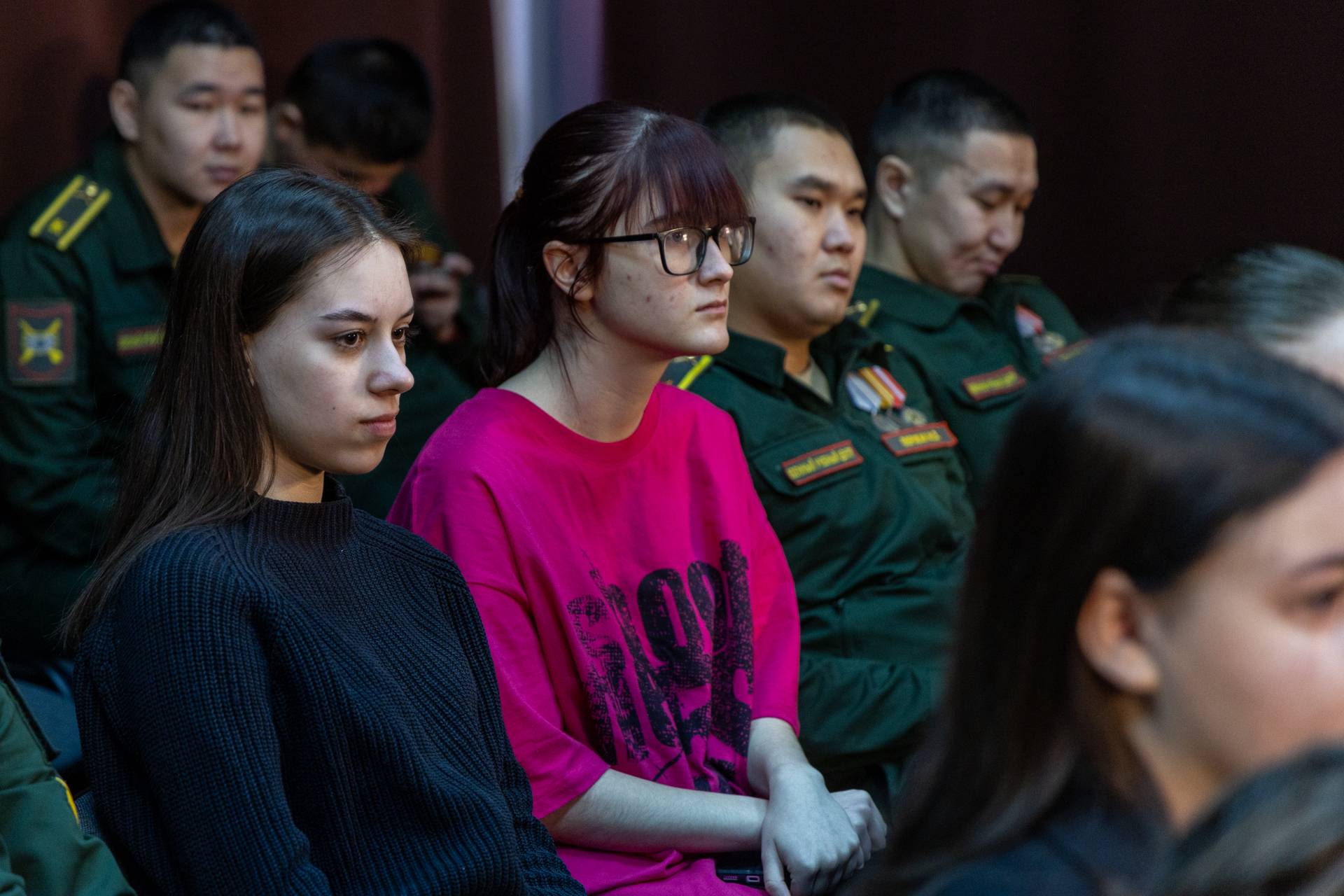 На встрече собрались будущие журналисты ИФИЯК СФУ, курсанты и сотрудники Военно-инженерного института СФУ, выпускники которого ежегодно пополняют ряды Вооружённых сил РФ.