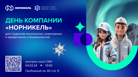 4 марта 2024 года в Сибирском федеральном университете пройдёт встреча с представителями компании «Норникель» для студентов технических, инженерных и юридических специальностей.