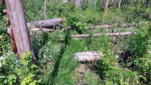 Лес на изученной территории представлен смешанными насаждениями с преобладанием кедра, пихты и ели, а также незначительной долей берёзы и осины. Натурные обследования показали стопроцентную гибель деревьев хвойных пород, однако берёзы и осины остались живыми в силу своей физиологии.