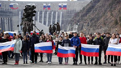 Студенты Саяно-Шушенского филиала Сибирского федерального университета и сотрудники Саяно-Шушенской ГЭС организовали митинг-флешмоб в поддержку России. Мероприятия прошло на смотровой площади у памятника «Покорителям Енисея». Более ста человек подняли флаги с российским триколором и выстроились в форме буквы «Z».