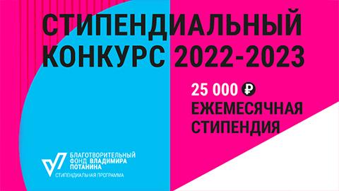 21 ноября 2022 года завершается приём заявок на участие в Стипендиальной программе Владимира Потанина. К участию приглашаются студенты первого и второго курсов очной магистратуры. Победителям конкурса будет выплачиваться стипендия 25 тысяч рублей в месяц до конца их обучения в магистратуре.