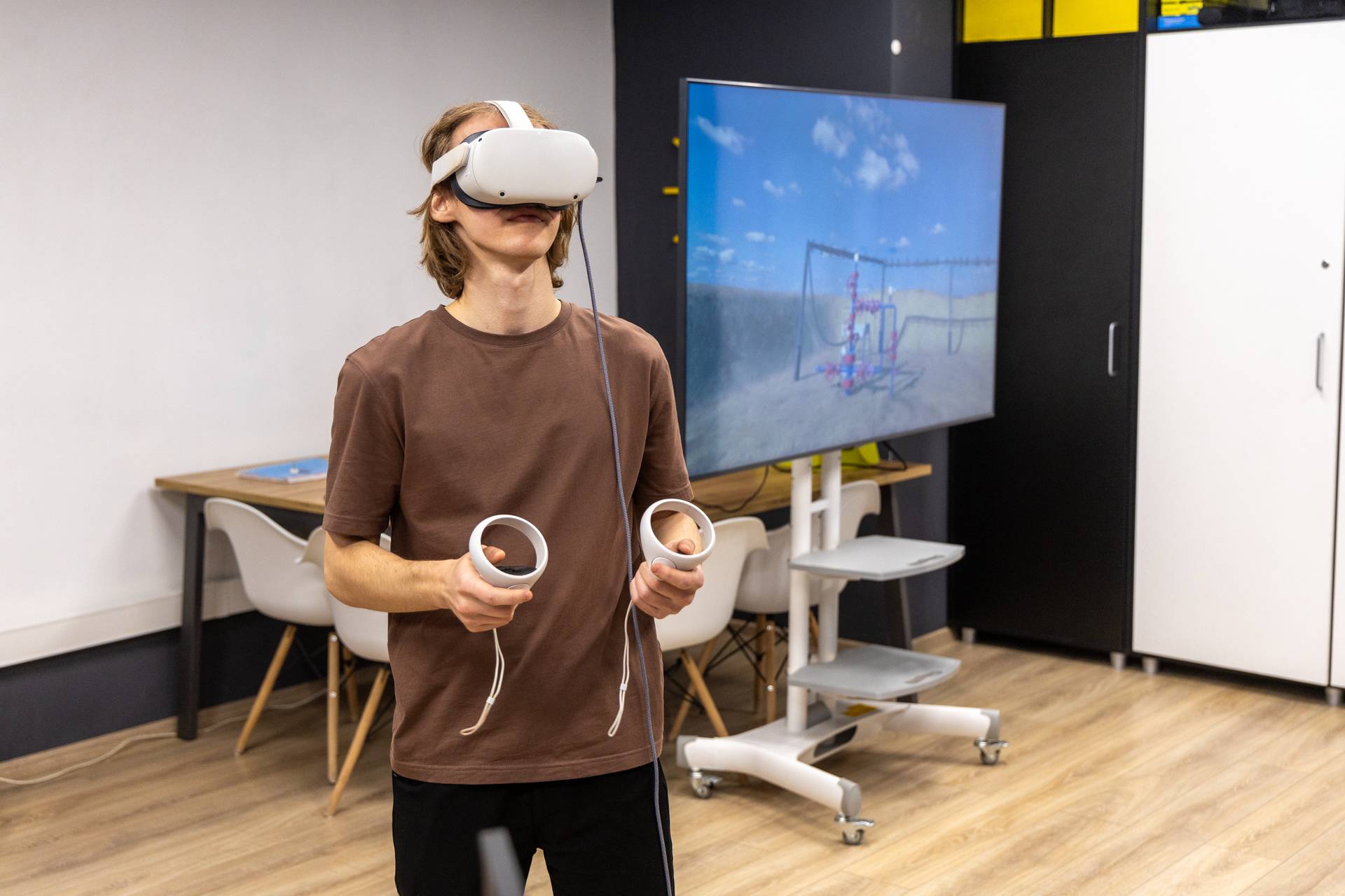 Виртуальный тренажёр — это интерактивный инструмент обучения, пользователи которого применяют экранные платформы/программное обеспечение, отражающие реалистичные события. Такие тренажёры дают пользователю немедленную обратную связь и реакцию на его действия. Отрабатывать задачи на подобном оборудовании можно так часто, как это необходимо. Можно симулировать аварийные ситуации в виртуальной среде, не подвергая работника опасности. VR-тренажёры дают целый комплекс ощущений человеку, находящемуся в искусственно созданном трёхмерном мире: можно менять точку обзора, приближать и удалять объекты.