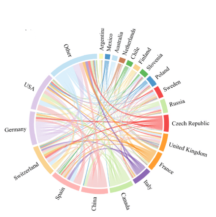 Дендроклиматические исследования проводились авторами из 103 стран. Россия по количеству публикаций находится на 11-м месте в этом рейтинге и по коллаборациям теснее всего связана со Швецией и Финляндией, отечественные учёные также активно сотрудничают с представителями других стран не только Европы, но и Азии, США.