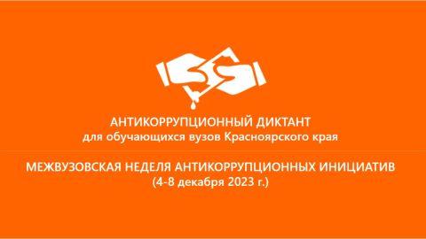 В рамках второй Межвузовской недели антикоррупционных инициатив 5 декабря 2023 года СФУ приглашает студентов СФУ и других образовательных организаций высшего образования Красноярского края присоединиться к написанию антикоррупционного диктанта.