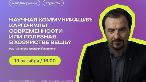 19 и 20 октября 2023 г. в Сибирском федеральном университете пройдут научно-популярные мероприятия с участием научного журналиста, главного редактора порталов «Нейроновости», «Индикатор», Российские древности и спецпредставителя Десятилетия науки и технологий в России Алексея Паевского.