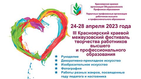 Красноярская краевая организация общероссийского Профсоюза образования, первичные профсоюзные организации работников высшего и профессионального образования приглашают принять участие в III Красноярском краевом межвузовском фестивале творчества работников высшего и профессионального образования.