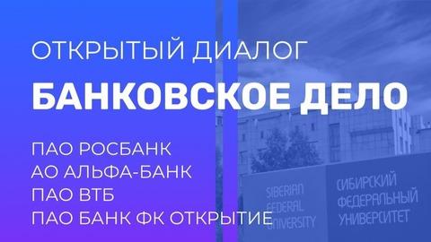 1 декабря 2022 года в Сибирском федеральном университете состоится открытый диалог с представителями ПАО «Росбанк», АО «Альфа-банк», ПАО «ВТБ» и ПАО Банк «ФК „Открытие“» на тему «Банковское дело».