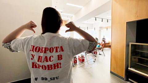 С 1 по 3 ноября 2022 года в СФУ проходят «Дни донора». К реализации важного мероприятия на этот раз подключились и активисты штаба #МыВместе СФУ. Волонтёры помогают участникам акции с заполнением анкетных данных, консультируют по возникающим вопросам, а также осуществляют различную помощь бригаде врачей.
