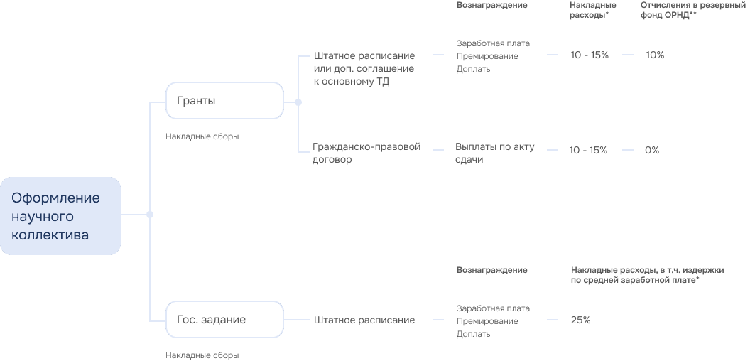 Рассмотрим процесс оформления научных коллективов для выполнения исследований в рамках грантов и государственных заданий:
